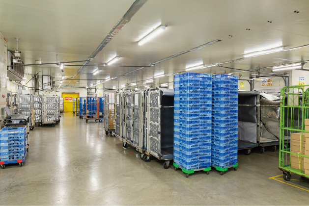 約70名のスタッフが協力しながら業務を進めています。安定した体制で日々の出荷を支えています。