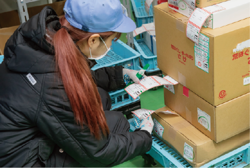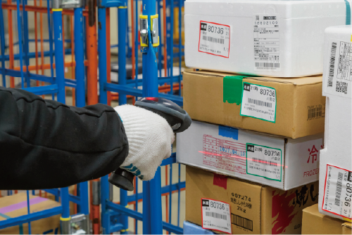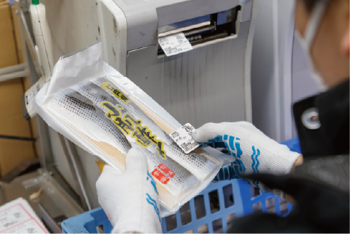 - ■商品の値札シールを貼付し、内容や日付をチェック