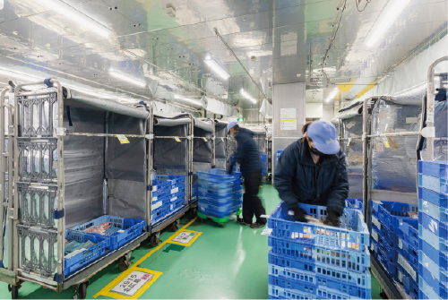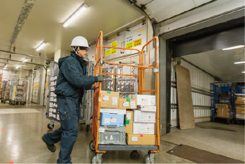 - ■トラックドライバーが積み込みやすいようにカゴ台車を整理